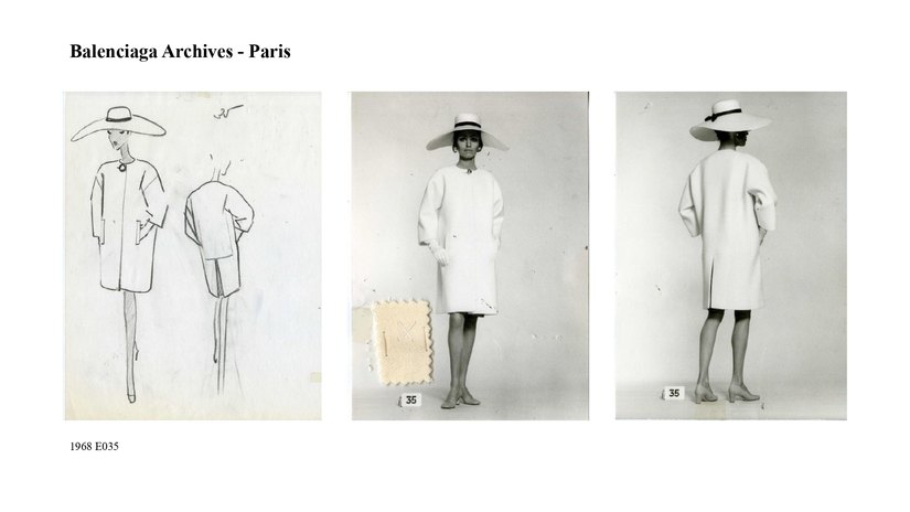 il 1968, provenienti da Balenciaga Archives di Parigi. I disegni, alcuni dei